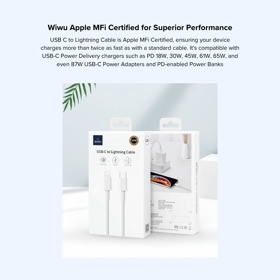 Upgrade your charging game with WiWU's Lightning USB C to Fast Charging Cable. Don't settle for less - get yours now and experience the difference!